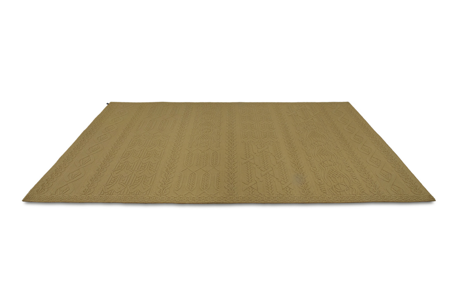 Ikoi symbolising repose and restfulness, masterfully explores knitting geometry through hand-tufting and refined techniques like needlepoint and bevelling. The result is a wonderful piece radiating warmth and artistic elegance.