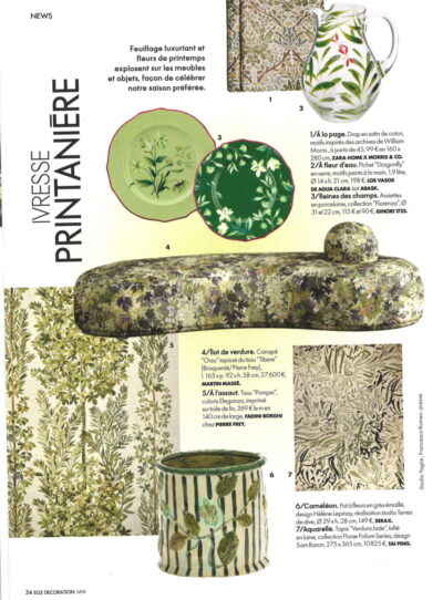 In its Spring issue, ELLE Décoration France features the Verdura Jade rug from the Florae Folium Series, part of Tai Ping’s collaboration with Sam Baron, celebrating spring in rich, nature-inspired green tones.