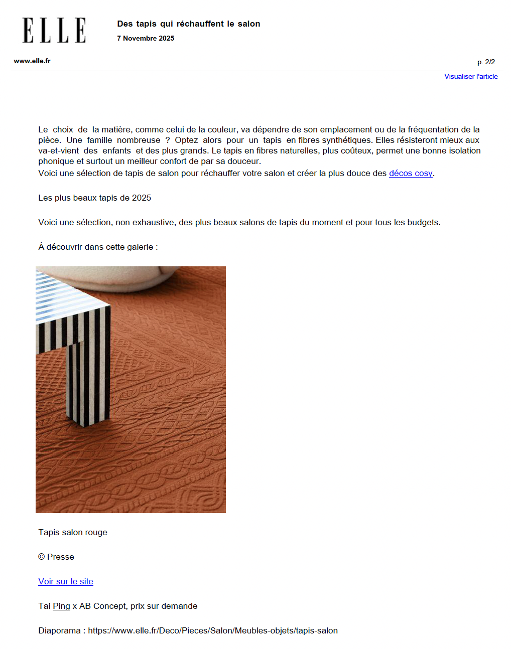 elle.fr highlights the Ami collection, an ideal collection for warming up your interior this winter.