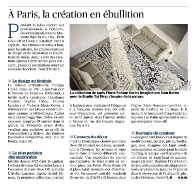 On the occasion of Maison & Objet In the City, Le Figaro highlights the launch of the brand-new Florae Folium Series by Sam Baron. The designer drew inspiration from nature to create this collection.
