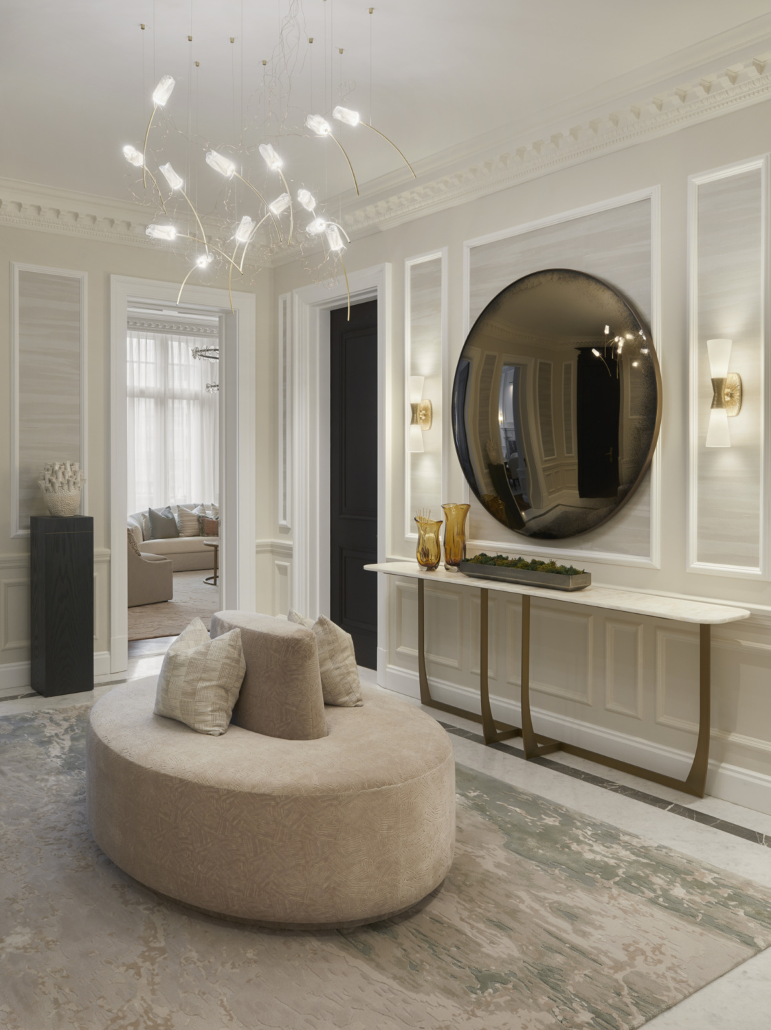 As part of the renovation of two exceptional apartments within the prestigious Harcourt House in London, the Tai Ping bespoke rugs played a key role in creating an atmosphere that is both refined and inviting. Designed by Helen Green Design, the project seamlessly blends luxurious materials, such as hand-painted silk wallpapers and custom artisan furniture, with contemporary elements. The Tai Ping custom-made rugs, featuring delicate textures and elegant patterns, perfectly complement this fusion of modernity and tradition. Each piece, crafted with unparalleled expertise, enhances the elegance of the space while respecting the architectural heritage of this iconic building.